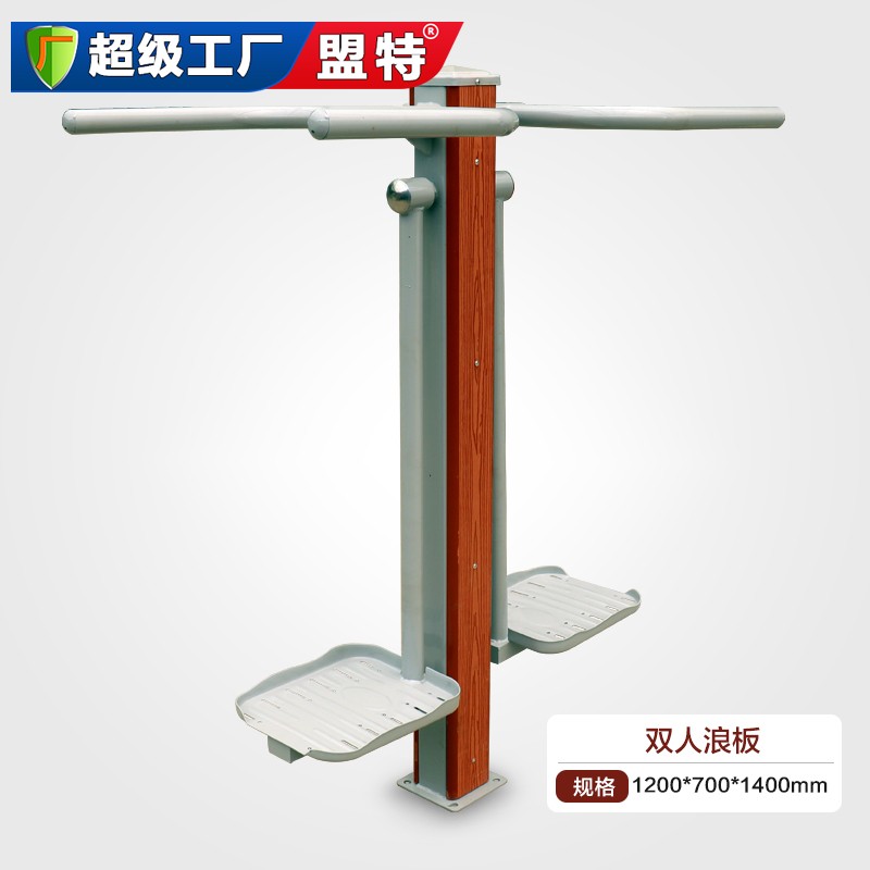 体育器材-公园社区健身路径-塑木双人浪板是一种常见于公园或社区健身路径中的健身设备,用于锻炼核心肌群、平衡能力和协调性,增强身体的灵活性和稳定性。以下是对该设备的详细描述,包括材质、安装方法以及使用注意事项。